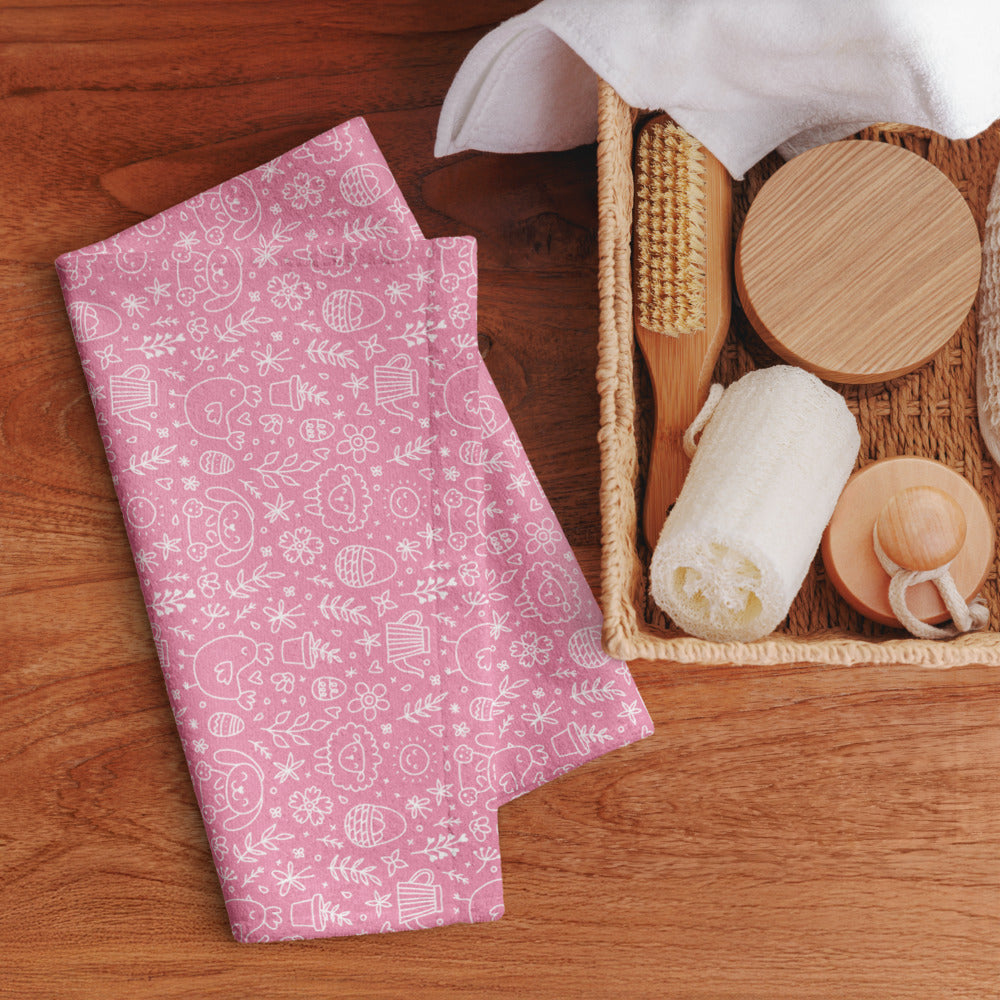 Pink Easter Doodle Kitchen Tea Towel ESHT33