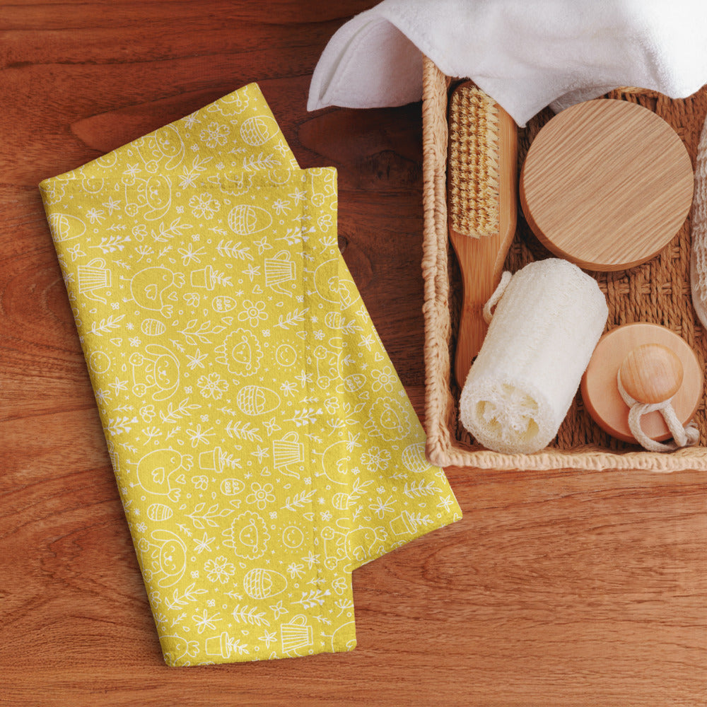 Yellow Easter Doodle Kitchen Tea Towel ESHT32
